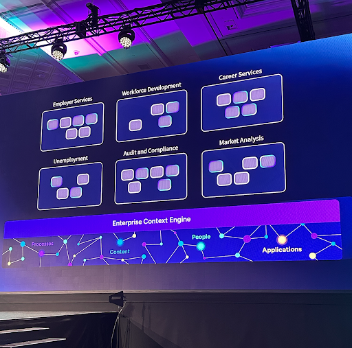 – Unemployment Benefits Processing: Hyland demonstrated how its Agent Mesh and Context Engine transformed a complex government process. Instead of caseworkers spending days reviewing fragmented applications, agents completed the process in minutes, retrieving data from multiple systems, validating documents, checking eligibility, and even suggesting additional benefit programs. Humans were still in the loop, but their work shifted from manual verification to oversight and decision-making.