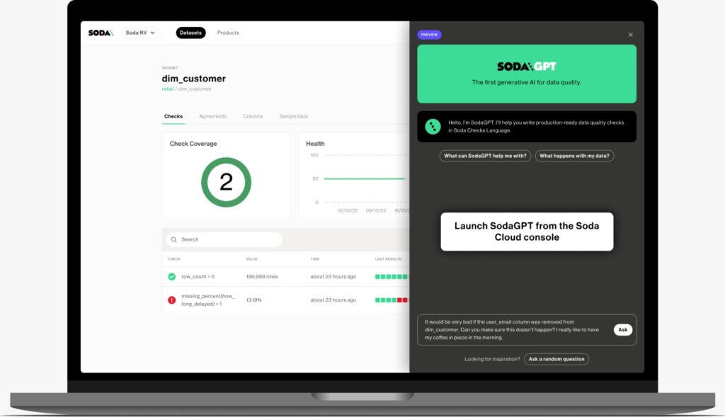 Soda, the data quality company, has today launched SodaGPT, the first Generative AI (GenAI) powered tool for data quality, enabling a no-code self-serve approach for users of all backgrounds to naturally express and define data quality expectations. Available in preview from today, SodaGPT combines the domain specific language capabilities of SodaCL with the natural language processing power of GenAI, to provide a single platform for data consumers and data engineers to work together to produce data that can be trusted and used by everyone